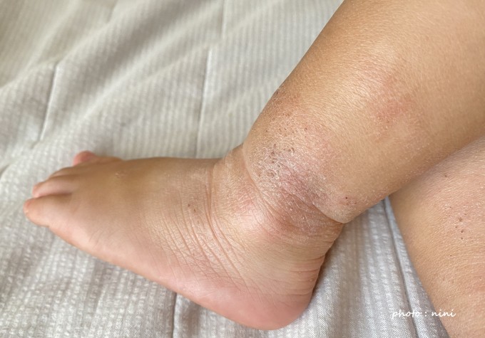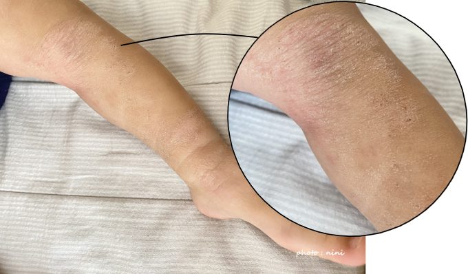 次男の場合は超ドライスキンのタイプで、全身が乾燥してカサカサ、部分によっては掻きすぎて皮膚がはがれ痛々しくなっている日もあります。