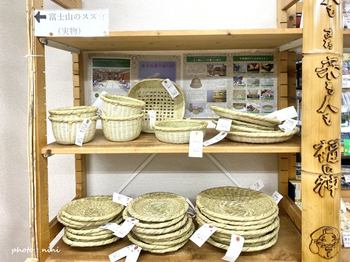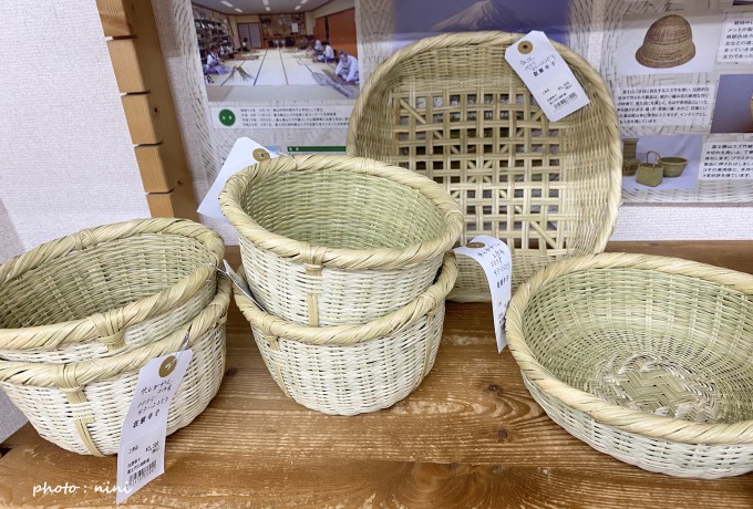 【富士勝山スズ竹工芸品】さん活動拠点である、富士河口湖町の勝山ふれあいセンター内にある「ざる工房河口湖」で作品が展示・購入できますが、活動は平日のみ。