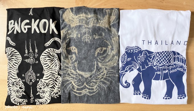 プラトゥーナーム市場で購入した白いTシャツは、生地も厚めでしっかりした作りで大当たりでした♡